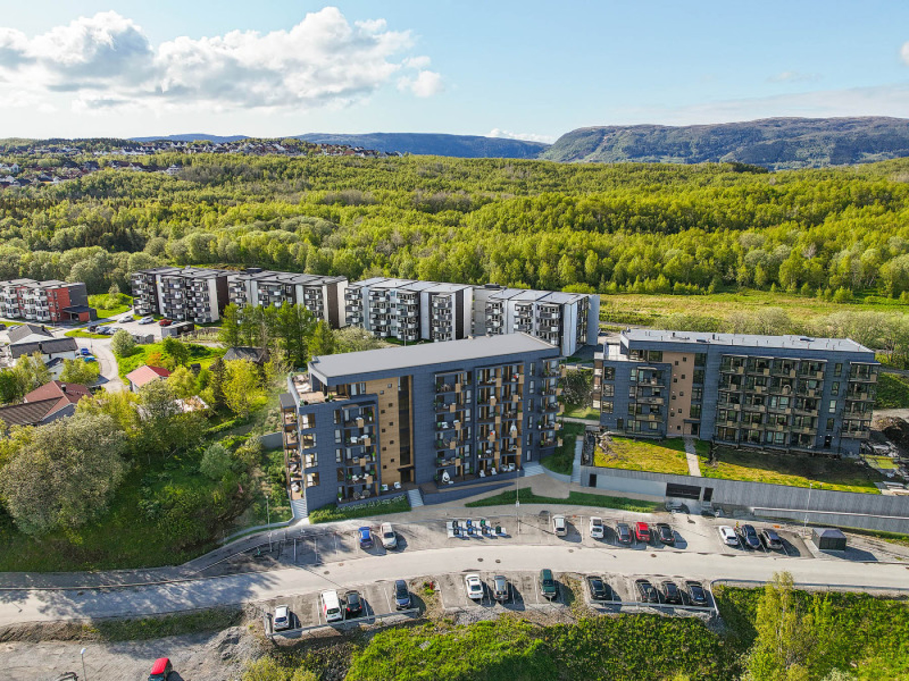 Moderne bostil, tett på naturen Støver Park får en flott plassering i terrenget, og de fleste leiligheter vil ha utsikt. Støver ligger ca. 11 km øst for Bodø sentrum og ca. 7 km vest for Tverlandet.